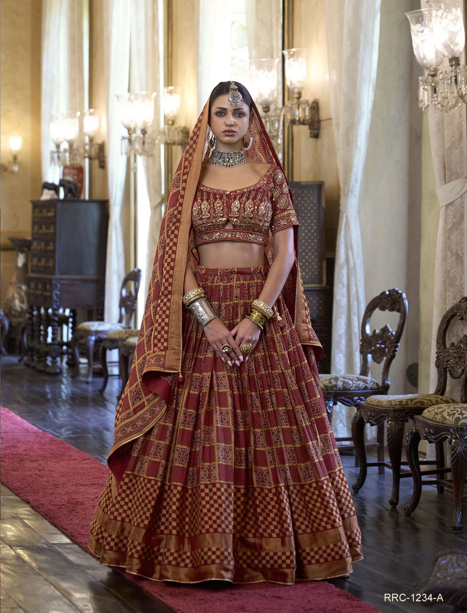 “Exquisite maroon lehenga ensemble adorned with intricate sequence work on the blouse. Paired with a combination dupatta, this ensemble exudes timeless elegance, making it a perfect choice for weddings and special occasions.”