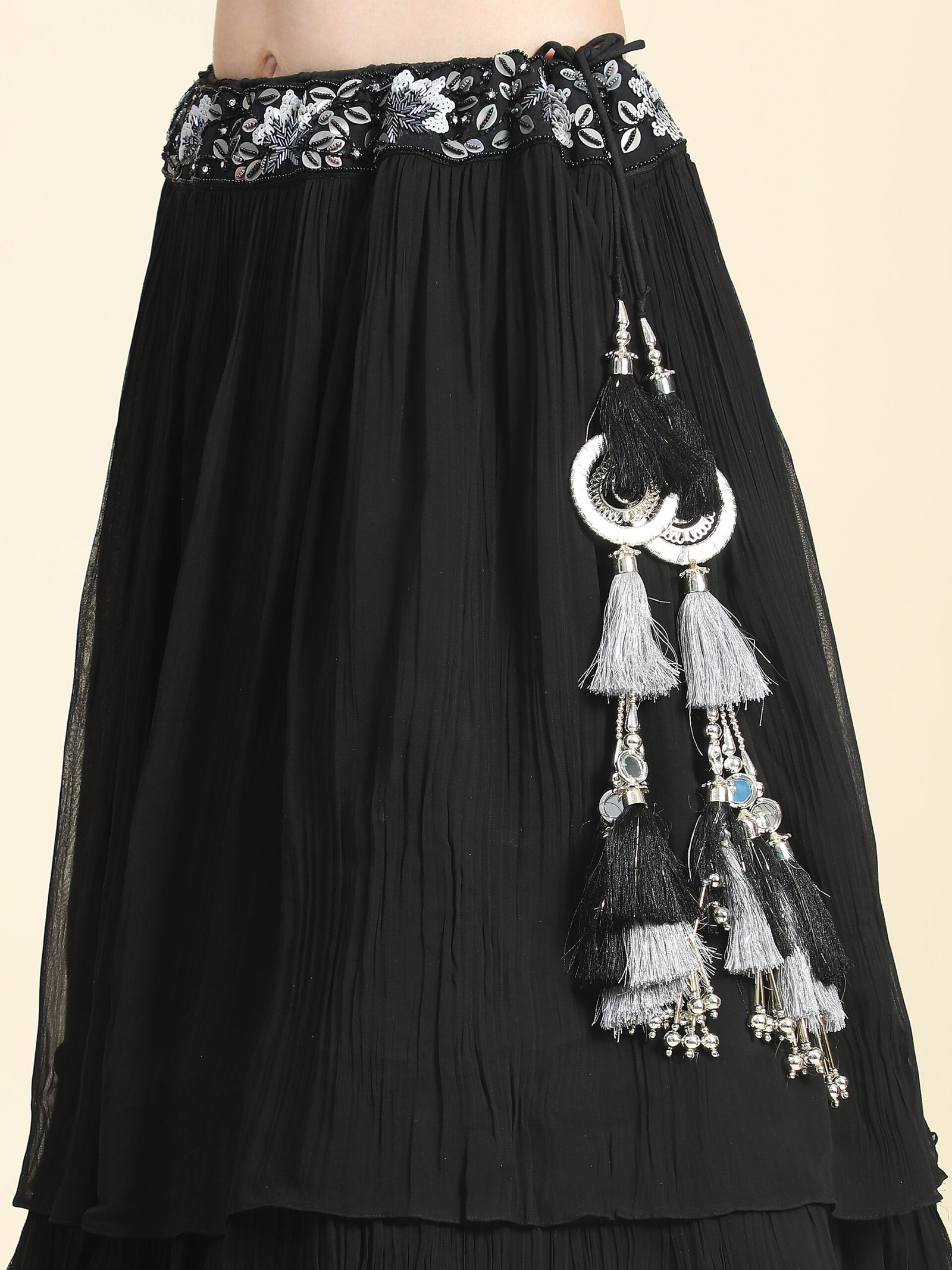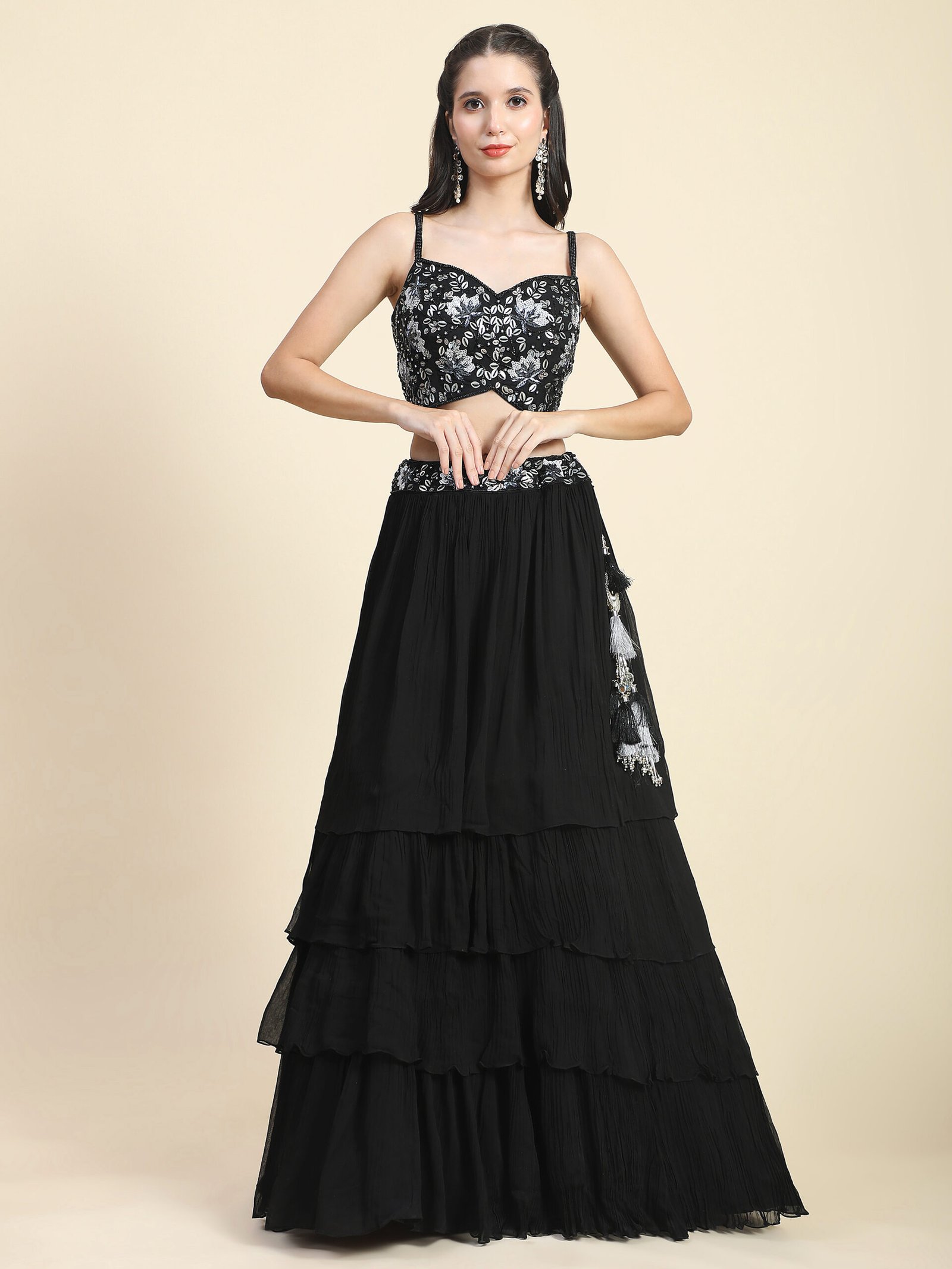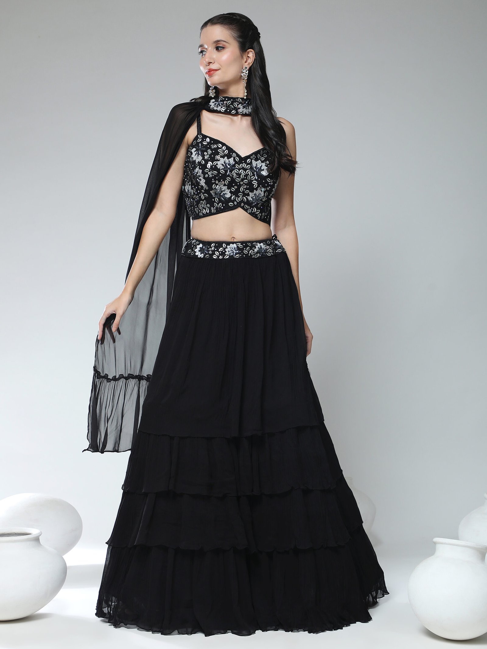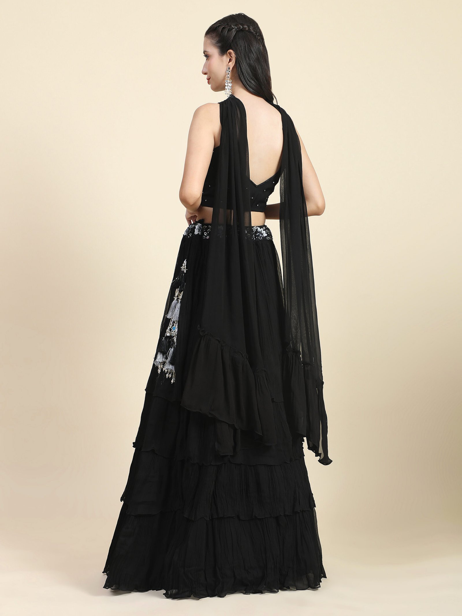 Phenav Black Silver-Toned Embroidered Sequinned Ready to Wear Lehenga Blouse With Dupatta