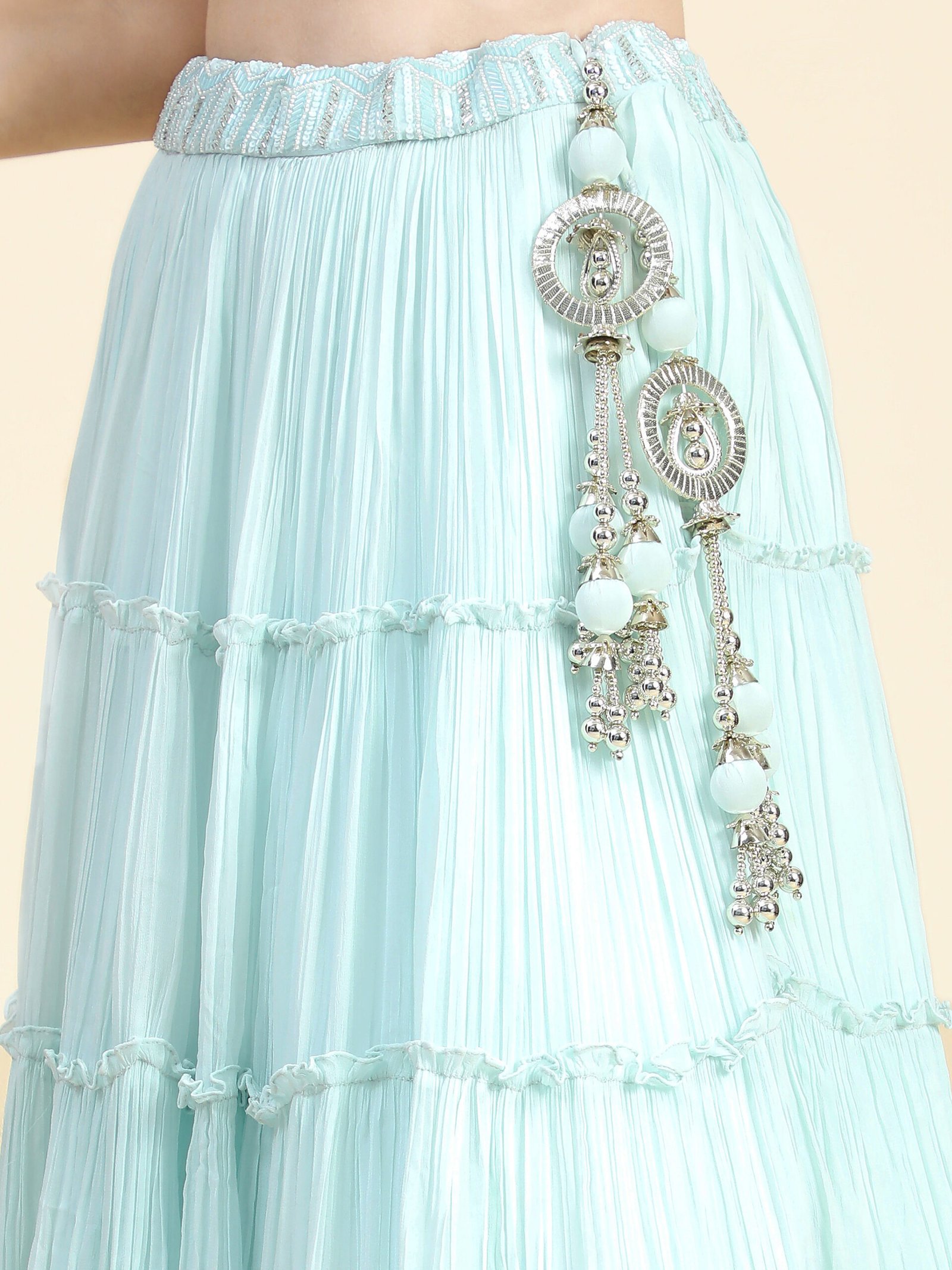 Phenav Blue Embroidered Beads and Stones Ready to Wear Lehenga Blouse With Dupatta