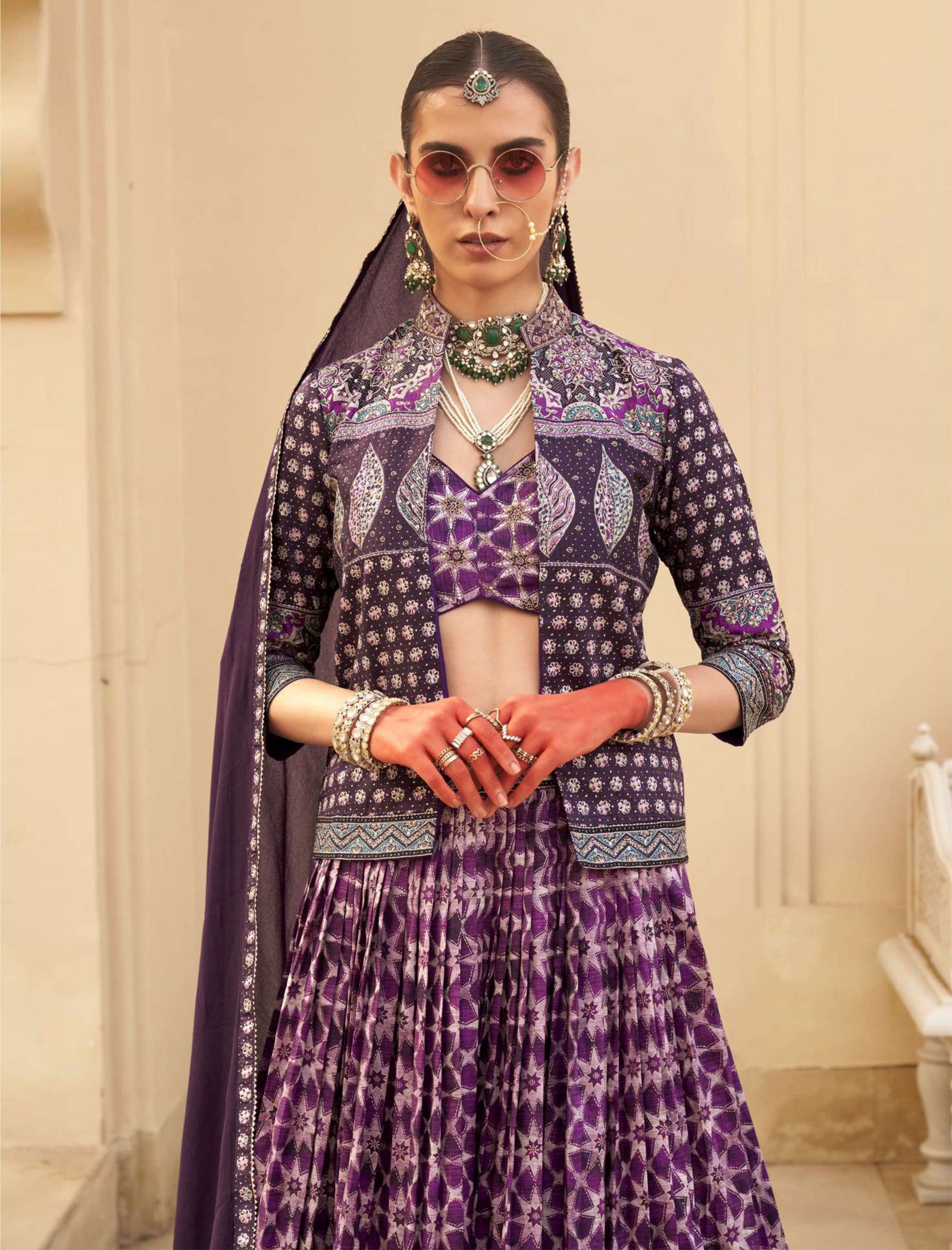 Step into regal elegance with our Purple Lehenga intricately adorned with stunning sequence work, accompanied by a matching Dupatta. This ensemble exudes sophistication, perfect for making a statement at any special occasion.